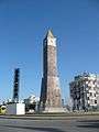 To the west, the artery ends on the Place de l'Indépendance (Independence Square). The space is framed by the French Embassy and Cathedral of St. Vincent de Paul. At its centre stands a statue of the Tunisian philosopher and historian Ibn Khaldoun, looking towards the Avenue Habib Bourguiba and lake beyond.[12] It had originally been intended for the statue to be erected on June 1, 1978, on the anniversary of Habib Bourguiba's return to Tunis after the French colonialism, but it did not take place until July 3.[12]