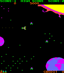 Azurian Attack is a fixed shooter arcade game released by Rait Electronics in 1982. The game features similar graphics and sounds to Galaxian except your fighter can move in 8 directions. The game was programmed in-house by Rait Electronics who were based in Christchurch, New Zealand and the game code runs on a modified Galaxian Board.