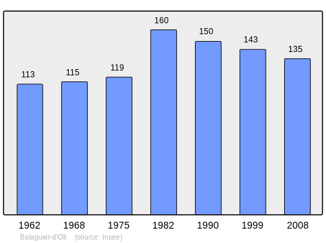 In 2010 the commune had 127 inhabitants. The evolution of the number of inhabitants is known from the population censuses conducted in the commune since 1793. From the 21st century, a census of communes with fewer than 10,000 inhabitants is held every five years, unlike larger communes that have a sample survey every year.[Note 1]