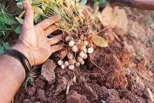 The cropping system is semi-permanent[11] and the Bambara groundnut can be cultivated as single crop or as intercrop.[11] Best suited intercrops are sorghum,[11] millet,[11] maize,[11] groundnut,[11] yams[11] and cassava.[11]
