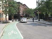Bank Street is a primarily residential street in the West Village part of Greenwich Village in the borough of Manhattan in New York City. It runs for a total length of about 710 metres (2,330 ft) from West Street, crossing Washington Street and Greenwich Street, to Hudson Street and Bleecker Street where it is interrupted by the Bleecker Playground, north of which is Abingdon Square; it then continues to Greenwich Avenue, crossing West 4th Street and Waverly Place. Vehicular traffic runs west-east along this one-way street. As with several other east-west streets in the Far West Village, the three blocks west of Hudson Street are paved with setts.