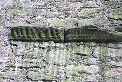 • The 'Maria' apotropaic Gothic engraving at Kilbirnie Place keep.