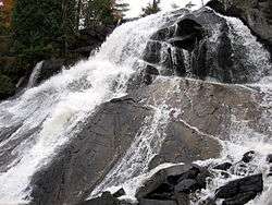 The river begins at Clemow Lake in the geographic township of Barron in the Unorganized South Part of Nipissing District, Northeastern Ontario. It flows southeast through Grand Lake where it is crossed by the former Canadian Northern Railway later Canadian National Railway main line, now abandoned, and where the Achray campground, formerly a station on the railway, is located on the north shore. It passes into Stratton Township, takes in the right tributary Carcajou Creek, then flows out over the Grand Lake Dam and again under the railway to enter Stratton Lake. The river turns northeast, passes over High Falls to High Falls Lake, then heads east over Brigham Chute. It takes in the right tributary Mulock Creek, enters Master Township, passes over the Cache Rapids, and reaches the Squirrel Depot picnic area and the Squirrel Rapids. The river heads out of Algonquin Park and Nipissing District into McKay Township, part of the municipality of Laurentian Hills in Renfrew County, Eastern Ontario. At this point the river becomes part of Barron River Provincial Park, a non-operating waterway park, and the north shore is part of CFB Petawawa. The river passes over First Chute and reaches its mouth at Lac du Bois Dur on the Petawawa River, which flows to the Ottawa River, about 2.5 kilometres (1.6 mi) west of the community of Black Bay and just before the border with the municipality of Petawawa.[3] The Petawawa Rivers flows via the Ottawa River to the Saint Lawrence River.