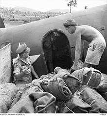 During the Kokoda campaign, there were three alternatives available to the Australians for resupply. Supplies and equipment could either be carried by Papuan porters overland from Port Moresby, they could be air dropped or they could be landed at a forward air strip and man-packed from there.[78] Topography precluded the prospect of developing an overland route for motor transport.[Note 6] Supply was limited by the number of available aircraft and unsuitable weather over the Owen Stanley Range stopping flights.[90] Civilian aircraft and pilots were pressed into service in an effort to meet demand. They were mainly used in flights between Australia and New Guinea or in rear areas in order to release military planes and personnel for service in forward areas.[91]