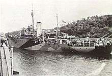 The first large vessel to deliver supplies to Oro Bay was the SS Karsik.[Note 13] She was escorted by HMAS Lithgow, in Operation Karsik on the night of 11/12 December 1942. The cargo was four Stuart light tanks of the Australian 2/6th Armoured Regiment and seven days of supplies for the 2/9th Battalion.[132] Karsik returned with a second load of tanks on the 14th, in Operation Tramsik.[133] On 18 December the Japara escorted by Lithgow departed Milne Bay and arrived at Oro Bay on the 20th. This voyage inaugurated the regular supply runs of Operation Lilliput. With few exceptions, the convoys of Lilliput were composed of the Dutch KPM vessels under the control of the US Army Services of Supply escorted by an Australian corvette.[134][Note 14]