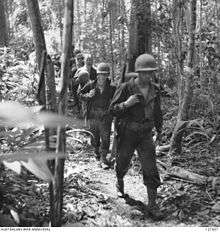 Staff officers considered the US 32nd Division unprepared and under-supplied for combat.[26] While in the US, the division had trained for a European war. Standard US Army practices dictated that a division should train together for a year,[27] but the 32nd had picked up more than 3,000 replacements fresh out of boot camp when the division was suddenly redirected to Australia.[28] When in Australia, they had moved to three different camps and were tasked with building each of them,[29] all of which cut heavily into the division's training time.[30] Harding, commenting on the unit's training, said, "From February when I took over until November when we went into battle we were always getting ready to move, on the move, or getting settled after a move."[31] What limited training they had received in Australia had been to prepare them to fight in Australia's outback to defend the country from Japanese attack. The 32nd was not trained, equipped or prepared to fight in the jungle nor taught Japanese tactics.[10]