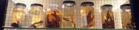 The Fish Collection holds over 800,000 specimens, including whole fish stored in alcohol, skeletons, cleared and stained fish, and fish X-rays. It also has 5,000 DNA samples. It is the third largest fish collection in Canada, with particular strengths in freshwater and nearshore marine species. Locations covered include Canada, the Aleutians, the Malay Archipelago, Mexico, the Galapagos Islands, Panama, and the Amazon River Basin.[24]