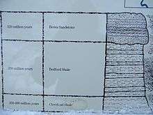 - Lower layers include "Gray Bedford" and "Red Bedford", which geologists consider paleoenvironmentally and paleogeographically different. These layers weather and are overgrown.[2]