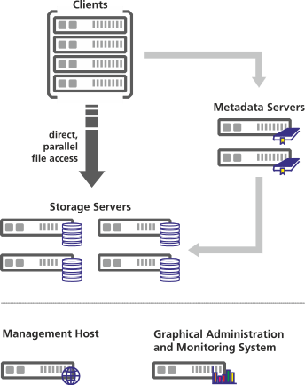 BeeGFS runs on any Linux machine and consists of several components that include services for clients, metadata servers and storage servers. In addition, there is a service for the management host as well as one for a graphical administration and monitoring system.