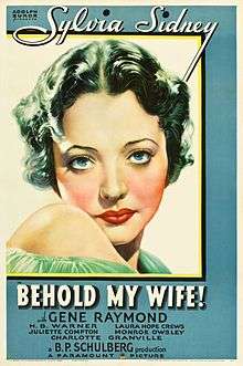 Behold My Wife! is a 1934 drama film directed by Mitchell Leisen. It stars Sylvia Sidney and Gene Raymond.[1] Based on a novel by Sir Gilbert Parker, The Translation of a Savage,[2] the story had been filmed before in the silent era in 1920 as Behold My Wife! starring Mabel Julienne Scott and Milton Sills.