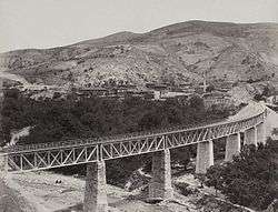 View of a nearby railway bridge showing the village in 1894 | |