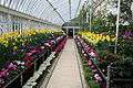 The gardens' most notable feature is the Palm House conservatory. The foundation stone was laid by the Marquess of Donegall in 1839 and work was completed in 1840.[4] It is one of the earliest examples of a curvilinear cast iron glasshouses in the world. Designed by Charles Lanyon and built by Richard Turner, Belfast's Palm House predates the glasshouses at Kew and the Irish National Botanic Gardens at Glasnevin, both of which Turner went on to build. The Palm House consists of two wings, the cool wing and the tropical wing. Lanyon altered his original plans to increase the height of the latter wing's dome, allowing for much taller plants. In the past these have included an 11 metre tall Globe Spear Lily. The lily, which is native to Australia, finally bloomed in March 2005 after a 23-year wait. The Palm House also features a 400-year-old Xanthorrhoea .