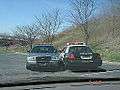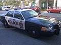 Two Ford Crown Victoria police cruisers from two neighboring towns in New Jersey, one being a Black and White.
