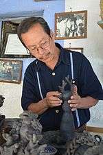 Teodora's oldest son Luis continues his mother's tradition, having been taught by her, making figures since he was six years old. Today, he works with his wife María Rojas de García, who was also taught by Teodora. He remains faithful to much of what his mother taught him, especially in pastillaje work, but he does have his own style, especially in the creation of human faces. He makes both animal and human figures as well as fantasy figures which combine elements from humans and animals, such as mermaids and persons with animal heads. One other speciality is nativity scenes. Luis also still lives in the family compound where his mother lived and worked but in a house he built for his family. Luis has exhibited his work in Mexico, the United States (San Antonio, Santa Fe and Tucson) and Europe. Luis and María's children have also worked with their parents and Luis is concerned about preserving the tradition.[5]