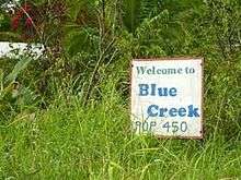 Blue Creek is a village in the Toledo District of Belize. it is a Mopan people and Kekchi village of about 270 people. The community lies along flat roads, spanning both sides of Blue Creek. Clusters of thatch huts border both sides of Blue Creek, a beautiful, clear stream emerging from the surrounding thick jungle. The colour of blue-green pool where Maya women beat their laundry on the smooth stones gave the village its name. The banks are lined with tall shady trees. The reflection of the thick jungle rainforest, which lines both sides, is clearly visible in the surface of the creek.