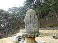 This is located at the east slope of Namsan Mountain in Gyeongju, Korea. This site is supposed to be the place where Bori temple had stood during the Silla period. The stone sculpture is 4.36m high, and the seated Buddha image itself is as high as 2.44m. Among the existing Buddhist images on Mt. Namsan, this image is best preserved. The Buddha sitting on the octagonal lotus pedestal is the image of Sakyamuni, who smiles at the world with the half-closed eyes and a merciful facial expression. Small Buddhist images and floral medallion designs are carved on the halo. On the back of the pear-shaped halo, the Bhaisajyaguru Buddhaup-holding a medicine bowl in his left hand is carved in relief.
