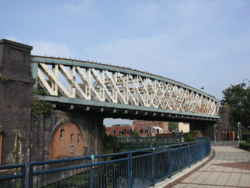 - ↑ Braunstone Gate Bridge, Leicestershire County Council historic photographs. Trains crossed "a 'bowstring' lattice girder bridge."