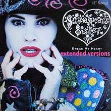 "Break My Heart (You Really)", also known as "Break My Heart", is a song by British pop act Shakespears Sister, released in 1988 as the lead single from their debut album Sacred Heart. "Break My Heart (You Really)" was released in most territories as a Double A-side with "Heroine", which according to Siobhan Fahey was to "give a more rounded picture of what I'm about".[1] In North American territories however, both songs were released as separate A-side singles.[2]