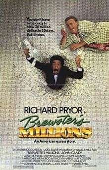 Brewster's Millions is a 1985 comedy film starring Richard Pryor and John Candy based on the 1902 novel of the same name by George Barr McCutcheon. It is the seventh film based on the story, with a screenplay by Herschel Weingrod and Timothy Harris. It was directed by Walter Hill.