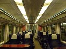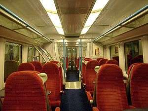 The interior of Standard Class aboard a Gatwick Express Class 460 EMU | |
