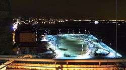 On December 13, 2012, Pier 5 officially opened.[40] Pier 5 consists of three athletic fields, two playgrounds and a picnic area, costing $26 million to develop the 5 acre site.[40] The athletic fields are made of synthetic turf and will predominantly be used for soccer and can also accommodate lacrosse, cricket, rugby and ultimate Frisbee. The fields will be available for youth and adult leagues, as well as for private and public schools. St. Francis College will host its Division I men's soccer home games at Pier 5 beginning in 2013.[41] The first Division I game at Pier 5 was held on September 10, 2013, as the St. Francis Terriers hosted and defeated the St. Peter's University Peacocks 3-1.[42] The inland portion of Pier 5 features 2 playgrounds and 57 picnic tables along with two dozen grills scattered around the picnic area. There are also tetherball courts and a child-size telescope.[43]