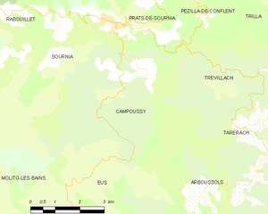 Campoussy is located in the canton of Sournia and in the arrondissement of Prades.
