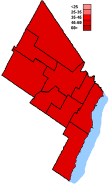 In 2004, the Liberals won a majority of the vote in every Mississauga and Oakville based seat, while won just under 50% in each of the three Brampton based seats. Their strongest riding was Mississauga East—Cooksville (57%), while their weakest seat was Brampton West (45%). In 2006, the Liberals won a majority of the votes in just three seats, with their strongest seat this time being Mississauga—Brampton South (54%) with their weakest seat being Oakville (43%), which they won by fewer than 800 votes. In 2008, the strongest Liberal seat was again Mississauga East—Cooksville, the only seat in the region where they won a majority of the vote (50%). In 2011 they were shutout of the region, but nearly won Mississauga East—Cooksville, losing it by fewer than 700 votes.