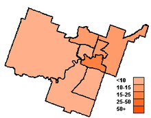 While the Conservatives have won everything outside of Edmonton-Strathcona in recent elections, their best seats are in the more suburban ridings outside of the city core. Since 2004, their best riding in the region has always been Edmonton—Spruce Grove. In 2011, they won 71% of the vote there. They also won more than 60% of the vote in Edmonton—St. Albert, Edmonton—Leduc and Edmonton—Mill Woods—Beaumont.