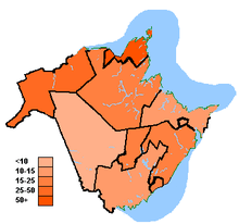 New Brunswick results in federal elections are divided among geographical and linguistic lines: The Liberals fare better in the predominantly francophone eastern and northern sections of the province, while the anglophone south and west has historically tended to favour the Conservatives. In 1993, Saint John was one of only two ridings in the country to go Progressive Conservative, electing Elsie Wayne. The Conservatives improved their seat count in each election from 2004 to 2011, until the Liberals swept New Brunswick (along with the rest of Atlantic Canada) in the 2015 election.
