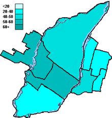 Historically, the City of Laval has been a battleground between the Liberals and the Bloc Québécois. The North End of Montreal has significant immigrant populations and generally supports the Liberals, although the BQ captured Ahuntsic and Bourassa in their 1993 near-sweep of the province, and took Ahuntsic and Papineau in 2006 as the Bloc gained support among immigrant groups. This area was traditionally Liberal until Mulroney's rise to power in 1984, which lowered the Liberals hold on the area to only two seats. The Bloc hoped to gain additional support here to counter any losses in rural Quebec to the Conservatives, who are very weak here.