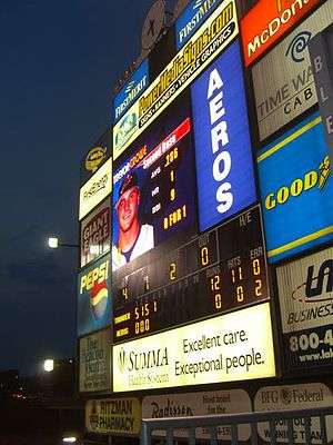 - ↑ Storm, Stephanie (April 7, 2006). "Canal Park to Get New Scoreboard". Akron Beacon Journal. Retrieved February 23, 2014.
