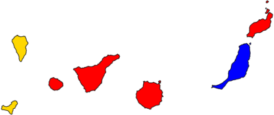 | Island-level units won by PSOE (red), AP-PDP-UL (yellow) and AM (blue) | |||||||||||||||||||||||||||||||||||||||||||||||||||