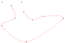 The curve is named after Edwin Catmull and Raphael Rom. The principal advantage of this technique is that the points along the original set of points also make up the control points for the spline curve.[4] Two additional points are required on either end of the curve. The default implementation of the Catmull–Rom algorithm can produce loops and self intersections. The chordal and centripetal Catmull–Rom implementations [5] solve this problem, but use a slightly different calculation.[6] In computer graphics, Catmull–Rom splines are frequently used to get smooth interpolated motion between key frames. For example, most camera path animations generated from discrete key-frames are handled using Catmull–Rom splines. They are popular mainly for being relatively easy to compute, guaranteeing that each key frame position will be hit exactly, and also guaranteeing that the tangents of the generated curve are continuous over multiple segments.