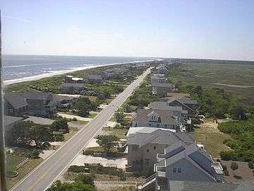 Tropical storms are a continuing source of concern, e.g., in Oct. 1954 Hurricane Hazel washed away almost all the houses on Oak Island. A threat in late summer/early fall, the 1996-1999 period was intense with four major hurricanes (Bertha, Fran, Bonnie, and Floyd) making landfall and having significant effects on the area, while in the fall of 2005, Tropical Storm Ophelia and Hurricane Tammy combined to cause flooding in low-lying areas.[10] In October 2016, the eye of Hurricane Matthew passed almost directly over the town inflicting in some areas extensive damage to the dune system.[11]