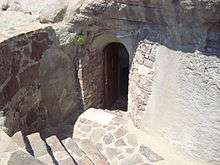 The Catacombs of Milos are located on Milos island, in Cyclades, Greece. They are found near the modern settlement of Trypiti, next to the site of the agora of the ancient city of Melos and 200m to the east of the ancient theatre. The name Trypiti ("drilled") derives from the fact that the surrounding area is full of caves cut into the porous volcanic rock, which are still used by the inhabitants as storerooms and stables. In ancient times, however, these caves were used as family burial chambers.