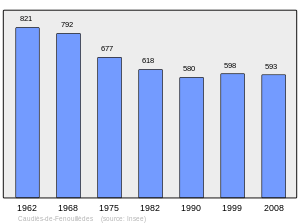 In French, the official name is Caudiès in 1790, when the village becomes a commune, even though the names of Caudiès-de-Fenouillèdes or Caudiès-de-Saint-Paul were already in use.[2] Caudiès-de-Saint-Paul is used until the end of the 19th century,[3] but the town officially changes its name on 31 January 1898 to Caudiès-de-Fenouillèdes, still in use nowadays.[2]