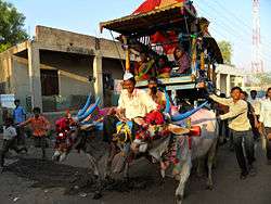 Chaugaon has an annual fair in the month of Chaitra (March/April) of the Hindu calendar in reverence to the goddess Bhavani maata. In this fair the Tagatrao the country-made chariot is pulled by the pair of bulls from the village to the temple of the goddess about two km away. The pulling of the Tagatrao is not an easy job as it is both heavier and larger than a regular cart. It is also an honor for any villager to engage his bulls for pulling Tagatrao up to the temple. It is a two-day celebration when the wrestling competitions are conducted by the village elders. In this wrestling competition rewards consisting of utensils and cash are paid to the winners. Wrestlers from the adjoining villages and taluka participate in this competition. A large crowd gathers to see and cheer the participants. This event has been going for time unknown.