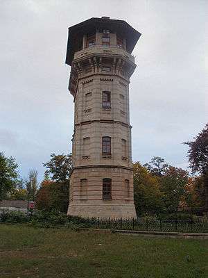 The Chișinău Water Tower is an architectural monument of Chișinău, Moldova, located at 2 Mitropolit Bănulescu-Bodoni Street and built at the end of 19th century after a project by Alexander Bernadazzi. It was a main part of Chişinău's water system. The upper level was built of wood and was destroyed by an earthquake. It was rebuilt between 1980 and 1983.