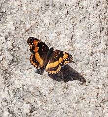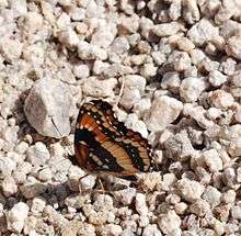 The California Patch (Chlosyne californica) is a butterfly of the Nymphalidae family found in the Southwestern United States and Mexico. It lives in desert washes and canyons in regions between Southern Nevada south to southwestern Arizona, southeastern California, Baja California and Sonora.[1]