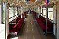 The trains feature longitudinal seating, and are equipped with fare collection boxes at each end for wanman driver only operation. The trains are also the first Choshi Electric Railway trains to be equipped with air-conditioning, although initially it was used only in simple ventilation mode, due to the insufficient capacity of the line's power supply.[10] From late June 2013, however, a static inverter was added, enabling the air-conditioning to be used.[11]