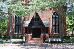 Christ Episcopal Church and Parish House is a historic Episcopal church located at 320 Pollock Street in New Bern, Craven County, North Carolina. It was built in 1871, incorporating the brick shell of the previous church built in 1824. It is a brick church building in a restrained Gothic Revival style. It features a three-stage entrance tower, with a pyramidal roof and octagonal spire. Beneath the tower is a Stick Style entrance porch added in 1884. The parish house was built between 1904 and 1908, and is a two-story, three bay by five bay, rectangular red brick building with a steep slate gable roof.[2]