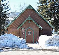 Christian Science Society, also known as Christian Science Society Building, is an historic Christian Science church building located at 641 Oak Street corner of 7th Street in Steamboat Springs, Routt County, Colorado; Built in 1934 of logs on a rubble rock foundation with a shingle roof, it was designed and constructed by local builder Ernest Campbell in the style of architecture that has come to be known as National Park Service Rustic. The society was organized on July 22, 1908, by local Christian Scientists, notable among whom was Margaret Crawford, who with her husband, James Crawford, had founded and named Steamboat Springs in 1875. It met at various local sites until November 4, 1934 when the first service was held it its new building. The building site purchased in 1920 had formerly been occupied by the Onyx Hotel. Christian Science churches and societies are no dedicated until they are free of debt and the Steamboat Springs society was dedicated on December 15, 1935. Regular services have been held ever since. The only significant changes in the building since 1934 have been replacing the roof with a metal one to allow snow to slide off and dropping the interior ceiling for better insulation. The side walls have also been stabilized by running several metal rods between them. On August 22, 2007, the building was added to the National Register of Historic Places. [2] [3]
