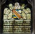 This window was given in memory of Charles James Monk (1824–1900) by his daughters. In the bottom right-hand corner of the window are Monk's Arms and the motto "Fortifier, Fideliter. Feliciter". Monk was an M.P.for Gloucester, Chancellor of Bristol diocese from 1855 and of Gloucester diocese from 1859. His father James Henry Monk was Bishop of Gloucester 1830-1836 and of Gloucester and Bristol until his death in 1856.[2]