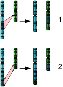 The two major two chromosome mutations; insertion (1) and Translocation (2).