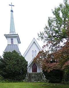 Church of the Transfiguration is a historic Episcopal church located at Henderson and Charles Streets in Saluda, Polk County, North Carolina. It was built in 1889, and is a one-story Carpenter Gothic-style church with a steeply pitched gable roof and board and batten siding. It features a two-tiered square corner bell tower and pointed arch stained glass windows. A vestry addition was built in 1968.[2]
