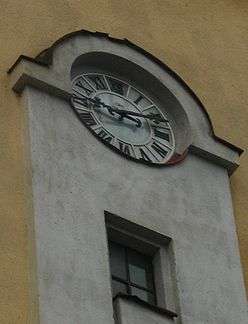 Kostol Navstivenia Panny Marie lies in the town centre in Povazska Bystrica. It was built in the 14th century by Jan Podmanitzky owner of castle Považský hrad. It was rebuilt in 1940 to satisfy the need for capacity, leaving only presbytery, tower and northern part of girting walls of the old church. Nowadays paned windows were designed by Slovak artists Vincent and Viera Hloznik. In the entrance hall of the church is placed the gravestone of Raffael Podmaitzky, Szigmund Balassa and his wife Alzbeta Zborowska.