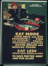 The Clean Plate Club was the beginning of a campaign first established in 1917 when the United States Congress passed the Food and Fuel Control Act or Lever Act. This gave the President the power to "regulate the distribution, export, import, purchase and storage of food." [1] President Woodrow Wilson released Executive order 2679-A [1] creating the U.S. Food Administration and appointed Herbert Hoover as the head, enforcing this act. This organization was given the task of making sure that the limited amount of food America had as a result of World War I didn’t go to waste, and to avoid importation of food as much as possible. Hoover knew that many Americans were willing to volunteer and had a strong sense of patriotism during the war, so he used that to his advantage when he advertised the idea of the “Clean Plate” campaign. Hoover promoted this idea to children who attended school with a pledge that read, “At table I’ll not leave a scrap of food upon my plate. And I’ll not eat between meals, but for supper time I’ll wait.” [2] This targeted children too young to understand the value of food in the difficult economic time. Many necessities such as flour and sugar were in short supply, so Hoover used a sense of American nationalism to encourage families to take appropriate rations and save food. His goal was for people to eat less, use less essential ingredients, and to finish their entire meal. By doing this, young children developed the habit of eating everything given to them, thus “cleaning their plate.”