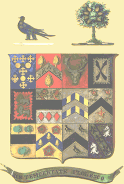 The House of Coffin is an ancient English family which originated in Devonshire. The Coffins have held a number of manors, the most notable of which is Portledge in Devon, England, which they held for over nine centuries. The progenitor of the American Coffins was Tristram Coffin, a Royalist, who came to Massachusetts from Devonshire in 1642. He was the original proprietor of Nantucket. The American branch is one of the Boston Brahmin, a group of elite families based in and around Boston. Many American Coffins are or were Quakers.