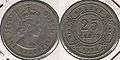 Twenty five cent coin obverse, larger size distinguishes this coin from the ten cent coin