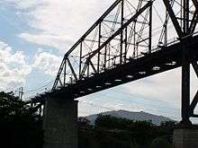 The bridge was replaced in 1950 by the Senator George Sellar Bridge. The next year the Wenatchee Reclamation District bought the bridge for $1.00, moving the pipes from outside the truss to within. The bridge was opened to foot traffic.[3] In 2007 concerns were raised about the bridge's ability to sustain foot traffic.[4] Repairs were made in 2010.[5]